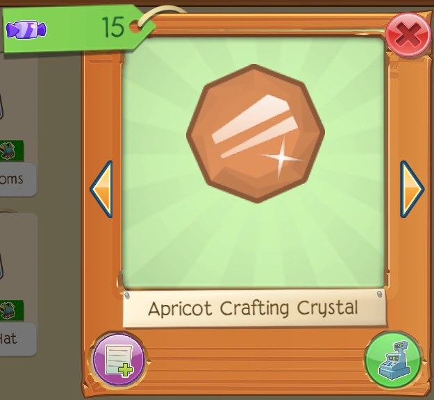 The Apricot Crafting Crystal is a Crafting Crystal. It was originally released on September 28, 2022, for 15 Candies from Peck.