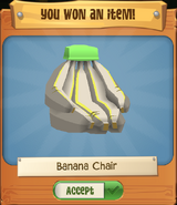 The Banana Chair is a den item. It was originally released in the Beta Testing at Jam Mart Furniture for 400 Gems.