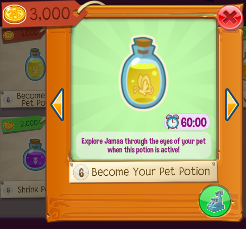 - Clicking on the "Go Shopping" button while this potion is active redirects to Pet Outfitters instead of Jam Mart Clothing.