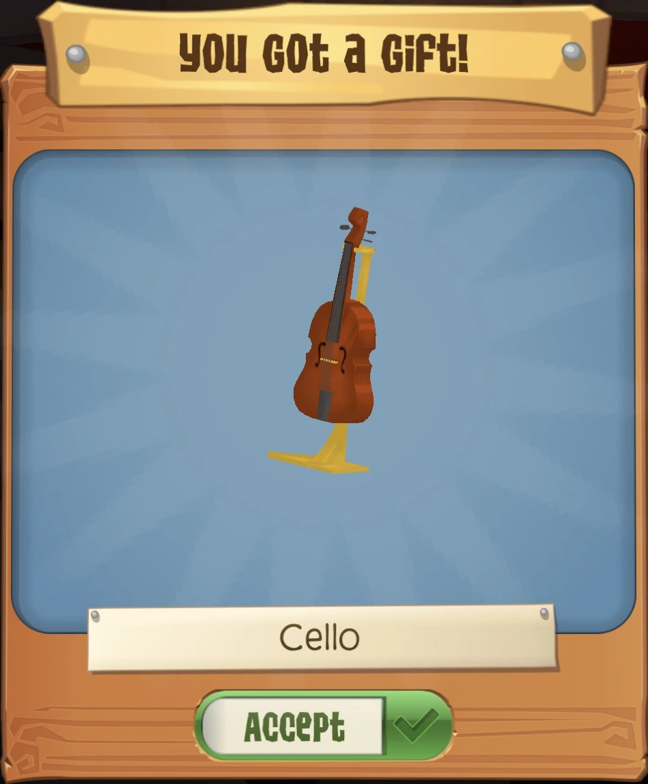 The Cello is a members-only den item. It was originally released on March 21, 2020, in a Pack Chest in any of the Pack Hideouts.