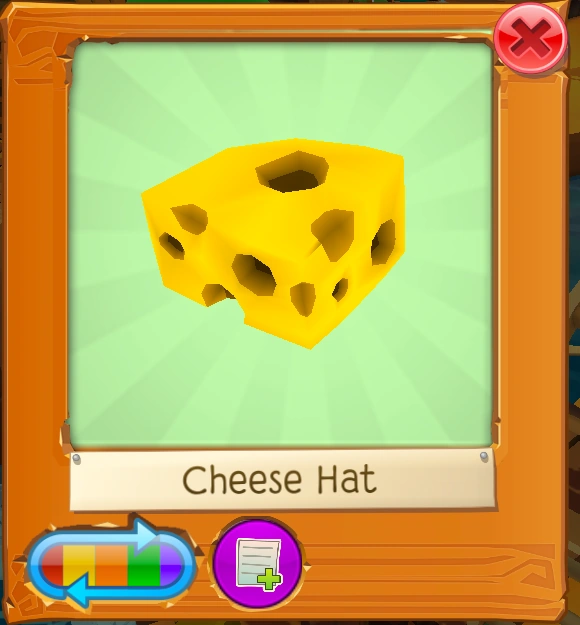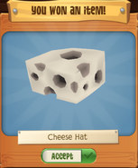 Not to be confused with the Pet Cheese Hat, Rare Cheese Hat, or Whiteout Cheese Hat.