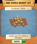 The Cookout Table is a den item. It was originally released on June 19, 2024, as a Weekly Member Gift.