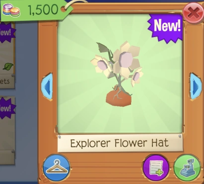 The Explorer Flower Hat is a clothing item worn on the head. It was originally released on July 4, 2020 at the Traveling Salesman for 1,500 Gems.