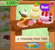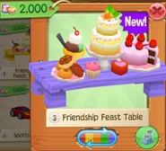 The Friendship Feast Table is a den item. It was originally released in January 2016 at the Friendship Party for 2,000 Gems.