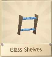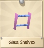 The Glass Shelves are a den item. They were originally released in the Beta Testing at Jam Mart Furniture for 350 Gems.