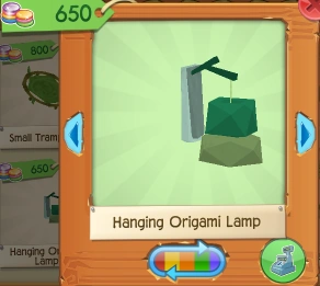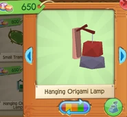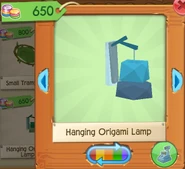 The Hanging Origami Lamp is a den item. It was originally released in August 2016 at Jam Mart Furniture for 650 Gems.