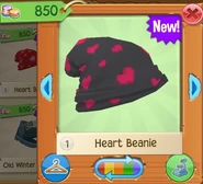 The Heart Beanie is a clothing item worn on the head. It was originally released during Friendship Festival in February 2016 at Jam Mart Clothing.