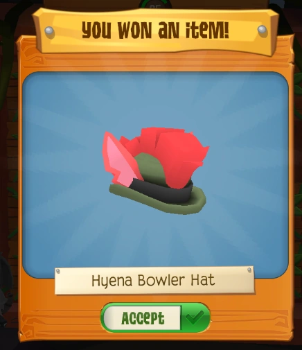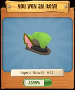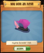 The Hyena Bowler Hat is a clothing item worn on the head. It was originally released on September 28, 2018, as a prize in the Hyena‘s Treasure Hunt.
