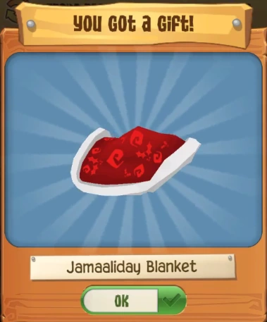 The Jamaaliday Blanket is a clothing item worn on the back. It was originally released on the 20th of December, 2015 as a gift of the Jamaaliday Gift Calendar 2015. It was re-released for the Jamaaliday Gift Calendar 2016.