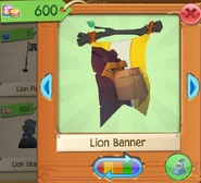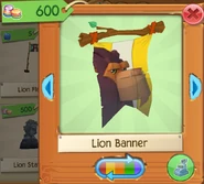 The Lion Banner is a den item. It was originally released on July 2016 at the Lion's Den for 600 Gems.