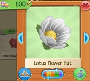 The Lotus Flower Hat is a clothing item worn on the head. It was originally released in April 2016 at Jam Mart Clothing for 800 Gems.