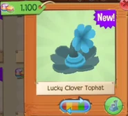 The Lucky Clover Tophat is a clothing item worn on the head. It was originally released during Lucky Day in March 2016 at Jam Mart Clothing for 1,100 Gems.