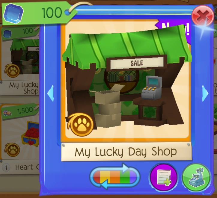 The My Lucky Day Shop is a members-only den item. It was originally released on March 4, 2020, at Shoreline Decor for 100 Sapphires.