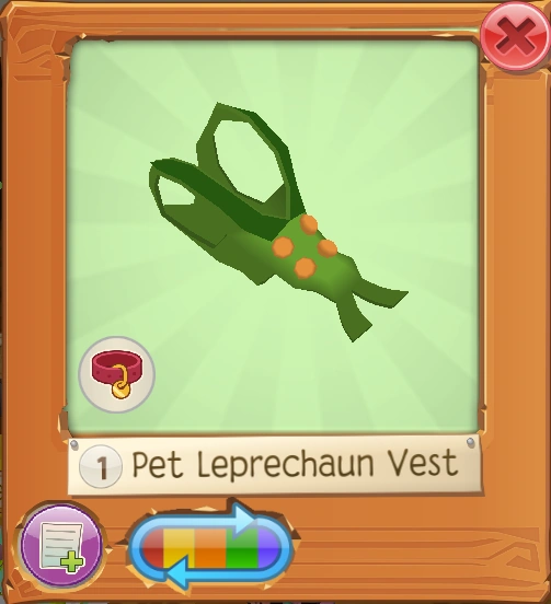 The Pet Leprechaun Vest is the pet variant of the Leprechaun Vest.