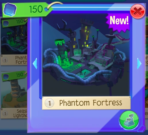 The Phantom Fortress is a den. It was released on October 2, 2019 at the Sapphire Shop and Den Depot for 150 Sapphires, or through the Phantom Fortress Bundle for 250 Sapphires.