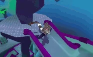 The den is a large Phantom-themed fortress. The buildings are dull colored and have large, neon green windows. At one part of the building, there is green goop around and inside it. There is also a waterslide that takes the jammer through the fortress.
