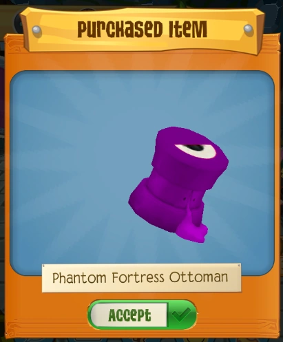 The Phantom Fortress Ottoman is a den item. It was originally released on October 2, 2019 at the Sapphire Shop through the Phantom Fortress Bundle for 250 Sapphires.