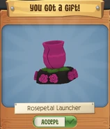 The Rosepetal Launcher is a den item. It was originally released on May 25, 2024, as a gift from the Monthly Login Gifts for logging in 25 times during May.