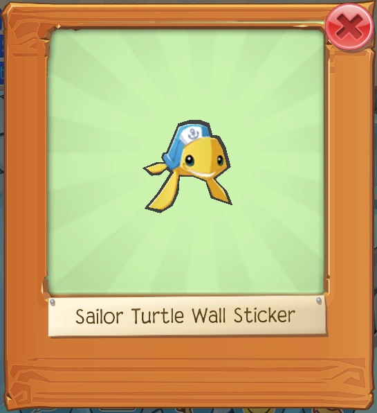 The Sailor Turtle Wall Sticker is a den item. It was originally released as a Pet Expedition Item on April 28, 2021.