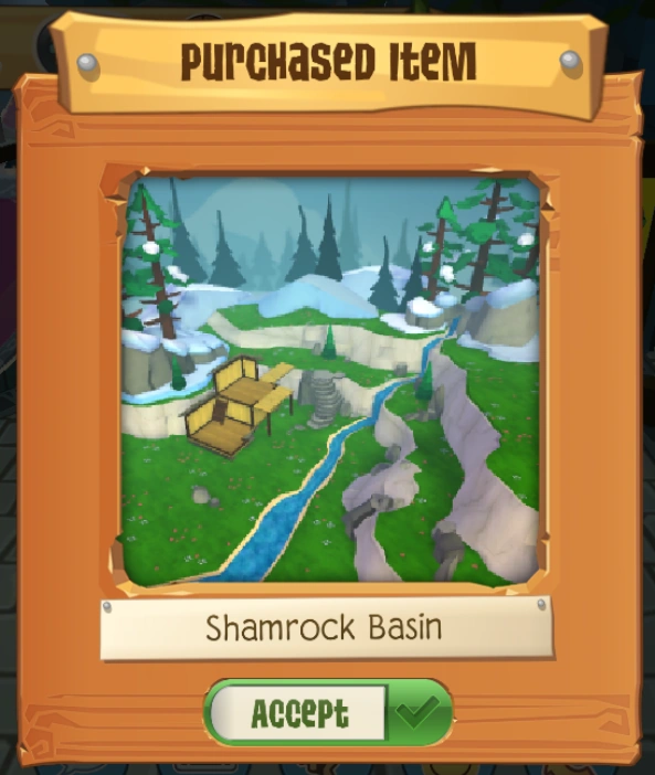 The Shamrock Basin was released on March 4, 2020, at the Sapphire Shop and Den Depot for 150 Sapphires or through the Shamrock Basin Bundle for 250 Sapphires.