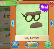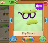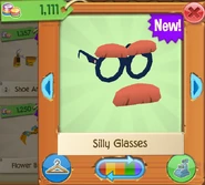 The Silly Glasses is a clothing item worn on the face. It was originally released in April 2016 at Jam Mart Clothing for 1,111 Gems.