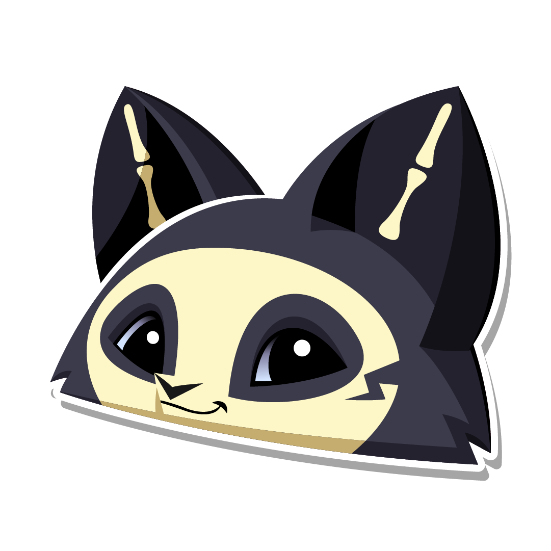 The Skeleton Fox has a default appearance of a pitch black fox with bright white bones marked on the head, ears, legs, and tail; it is similar to the Skeleton Suit on Animal Jam Classic. It also has red eyes and black pupils.