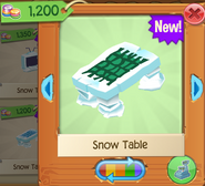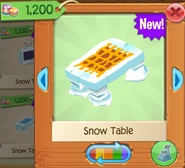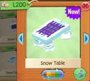 The Snow Table is a den item. It was originally released in December 2015 at Jam Mart Furniture for 1,200 Gems.
