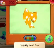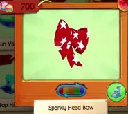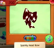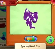 The Sparkly Head Bow is a clothing item worn on the head. It was originally released in the Beta Testing at Jamaa Store (Jam Mart Clothing) for 450 Gems.