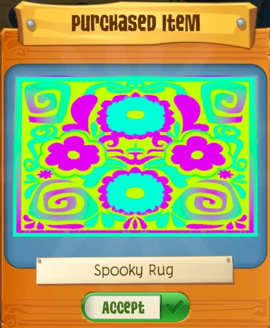The Spooky Villa Rug is a den item. It was originally released on October 10, 2018 at the Sapphire Shop through the Spooky Villa Bundle for 250 Sapphires.