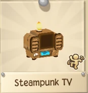 The Steampunk TV is a den item. It was originally released in January 2016 at Jam Mart Furniture.