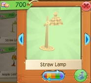 The Straw Lamp is a den item. It was originally released in August 2015 at Jam Mart Furniture for 700 Gems.