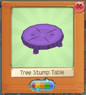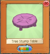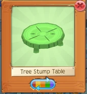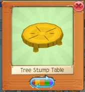 Not to be confused with the Round Table. The Tree Stump Table is a den item. It was originally released in the Beta Testing at Jam Mart Furniture.