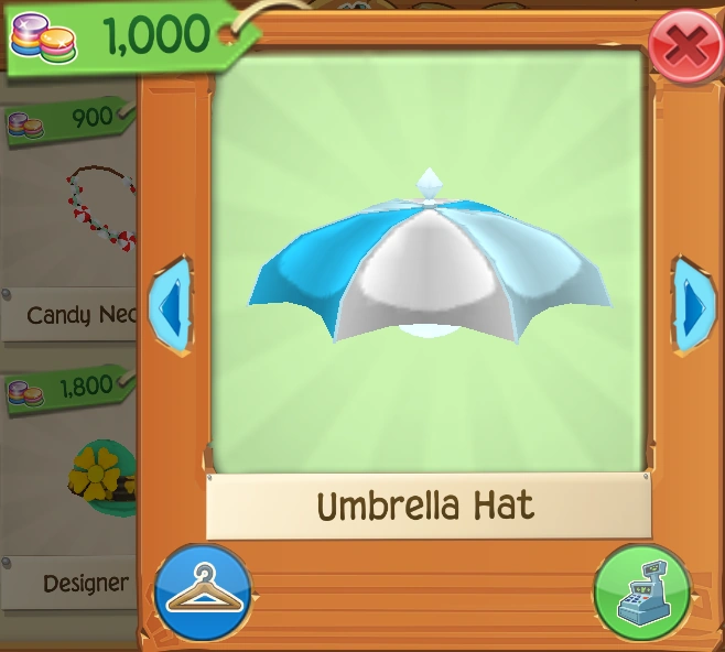 The Umbrella Hat is a clothing item worn on the head. It was released in July 2017 at the Traveling Salesman's Shop for 1,000 Gems.