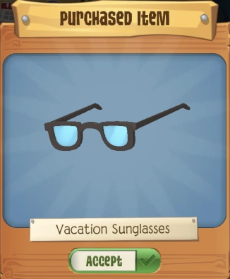 The Vacation Sunglasses is a clothing item worn on the face. It was originally released on July 1, 2020 at the Sapphire Shop through the Excellent Elephant Bundle for 250 Sapphires.